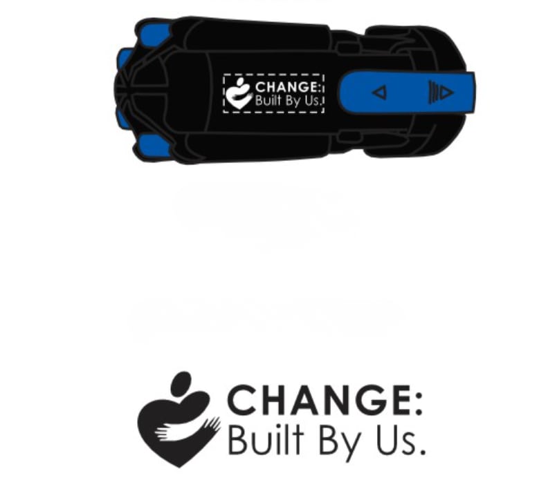 - Imprint on front reads "Change: Built by Us"